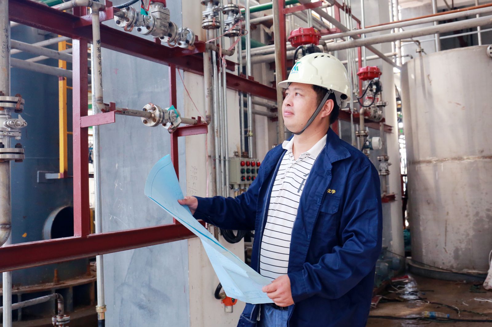 2017年润泰化学(泰兴)公司的建设如火如荼,他日夜坚守在项目工地,为打造本行业最优质的产品,不断完善工艺流程。现代化的科技设备切实降低了劳动程度,提高了生产效率与清洁水平,对生产工艺、原辅材料、生产设备等进行优化和提升,实现了资源合理利用,大大提高了产品纯度。调整废水、废气处理工艺,使废水、废气处理更加有效彻底,实现了达标排放。
