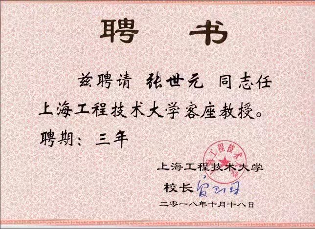 润泰股份张世元被聘任为上海工程技术大学客座教授