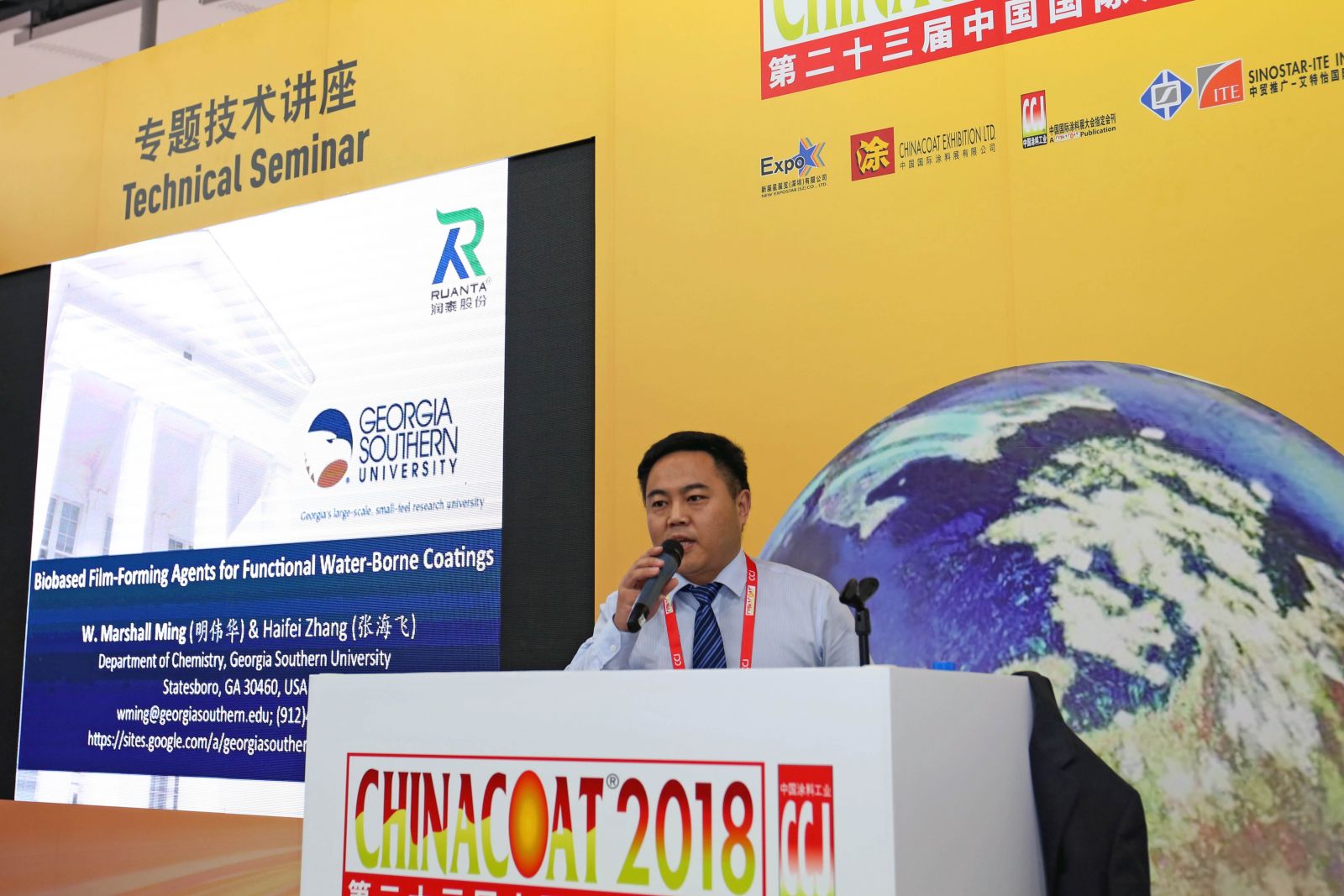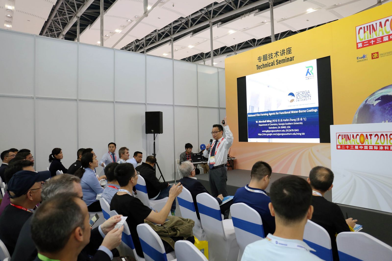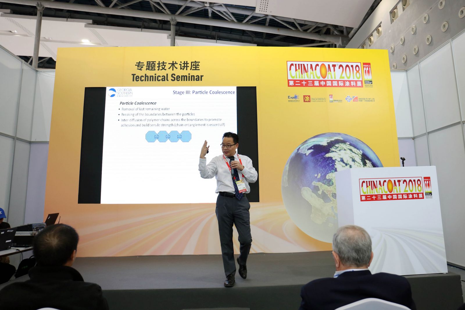 本次技术讲座再度邀请到美国南佐治亚南方大学化学专业全职教授明伟华教授(博士)亲临主讲,多方面的介绍了生物基成膜助剂的性能、应用及其优越性。