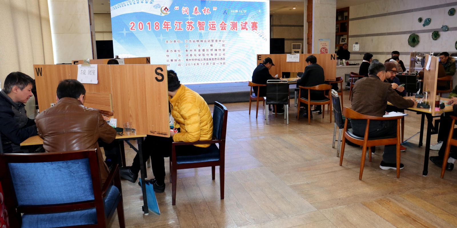 润泰股份讯 为备战2019年全国智力运动会,“润泰杯”2018江苏智运会测试赛于12月8日,在美丽的AAAAA级溱湖风景区隆重开赛。润泰股份作为本次活动的协办方全程筹备和赞助了本次比赛。同时“润泰股份桥牌俱乐部”代表队也参与了此次竞技。