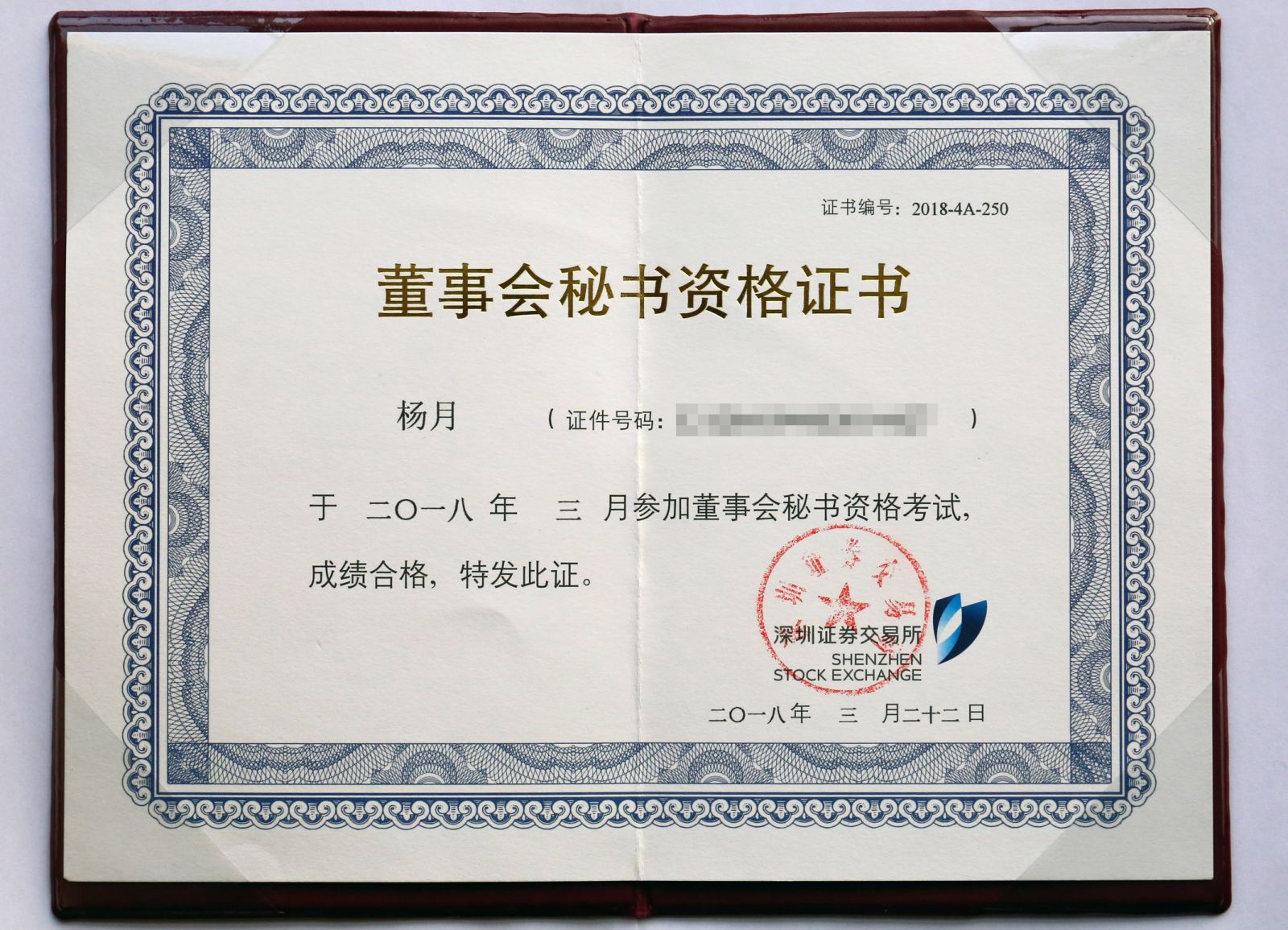 在她勤奋的努力下,分别于2017年11月考取了全国中小企业股份转让系统董事会秘书资格证、2018年3月考取了深圳证券交易所董事会秘书资格证、2018年5月考取了上海证券交易所董事会秘书资格证、2018年12月考取了证券从业资格证。