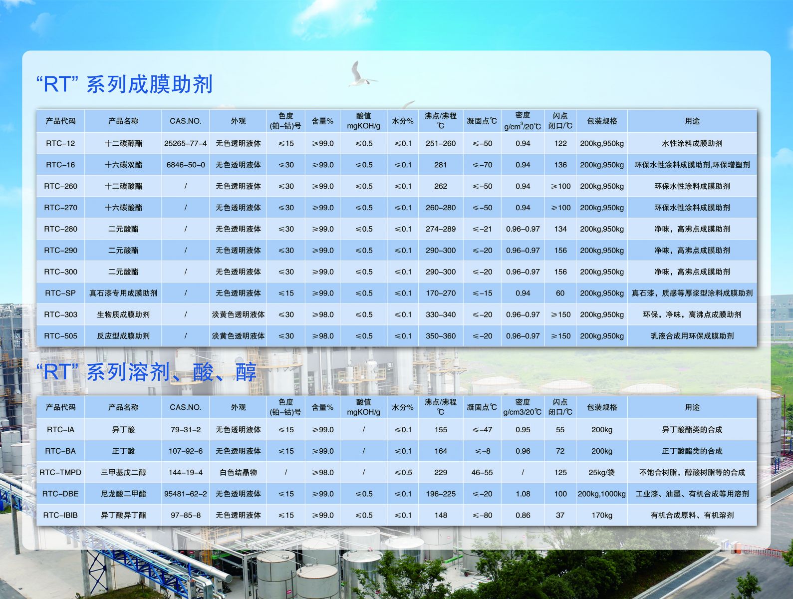 即:1万吨的医药中间体,1万吨的催干剂,3万吨的增塑剂、高沸点溶剂,5万吨的“RT”系列成膜助剂。