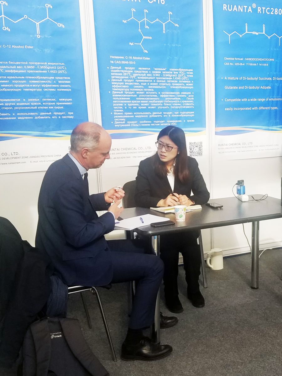 润泰股份讯 第23届俄罗斯国际涂料展(Interlakokraska 2019)于2019年3月4日-7日在莫斯科举行。该展会是目前俄罗斯境内涂料行业规模最大、最权威的专业展览会。参展商主要是涂料及其各种原材料、涂料及涂装设备等行业的知名企业。润泰化学股份有限公司组织国际业务部精英参加了本次展会。