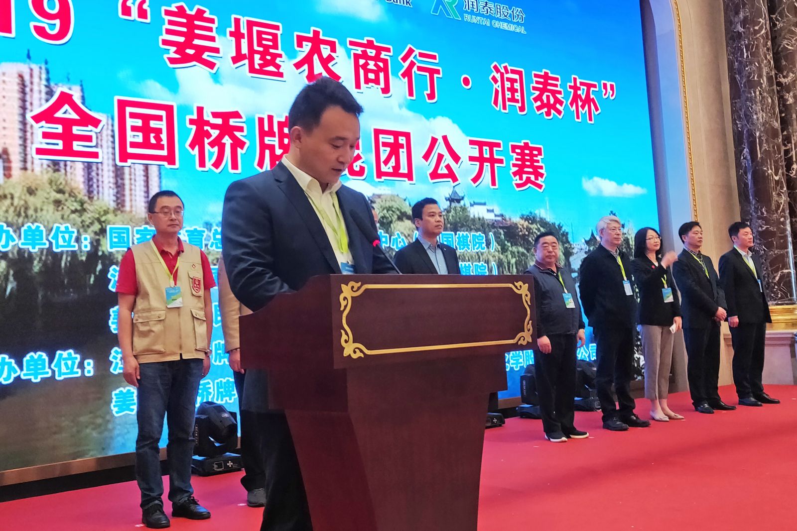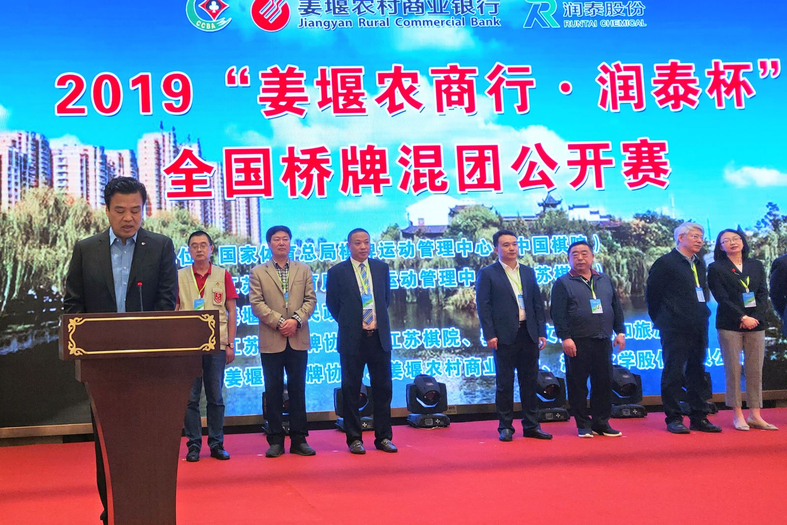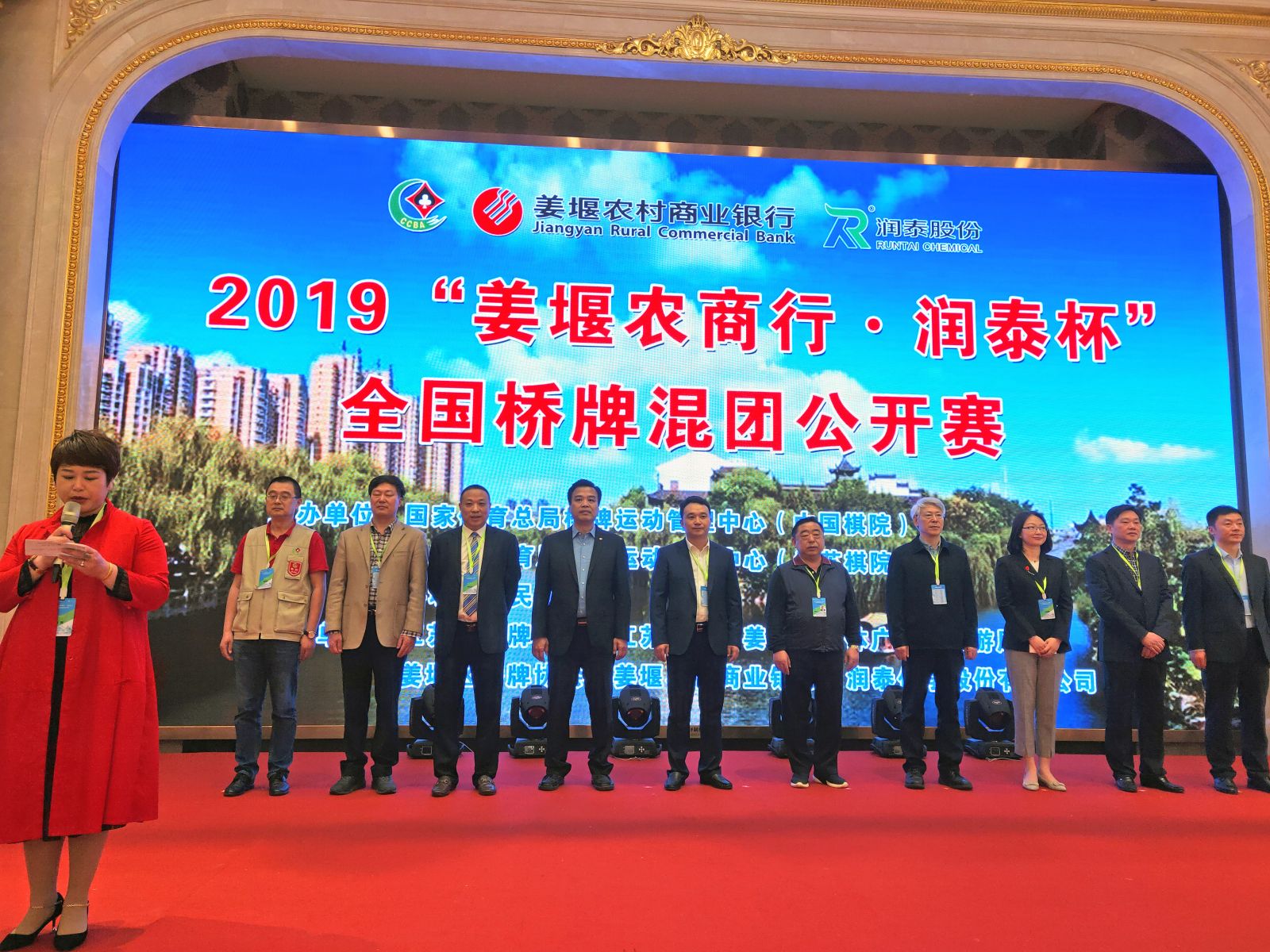 润泰股份讯 早春四月,春意盎然,2019“姜堰农商行·润泰杯”全国桥牌混团赛于4月25日在素有鱼米之乡的古镇姜堰——黄河大酒店隆重开幕。来自全国各地53支代表队400余名选手共同参加了本次赛事。