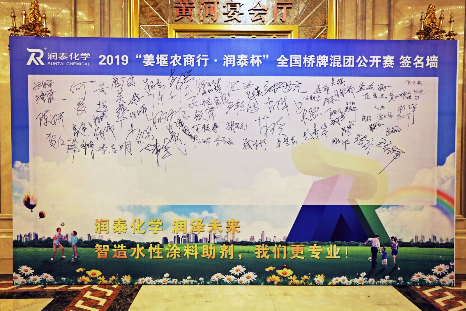 润泰股份董事长张世元在间歇期间接受了中国体育报副总编陈君的采访,他表示:一定要把姜堰全国混团公开赛办成传统赛事,目标是达到100支参赛队。自2018年与姜堰桥牌协会接触后,就点燃了桥牌的热情,这也是润泰化学股份有限公司第二次倾情赞助桥牌赛事。公司创办润泰桥牌俱乐部,这也是姜堰的第一个桥牌俱乐部。希望通过内部开展桥牌活动,首先是可以提升管理人员的整体管理水平,其次也是为了丰富企业内部员工的业余生活,再就是希望让桥牌文化成为润泰企业文化的组成部分,促进润泰股份走得更远,为打造百年品牌奠定坚实的基础。
