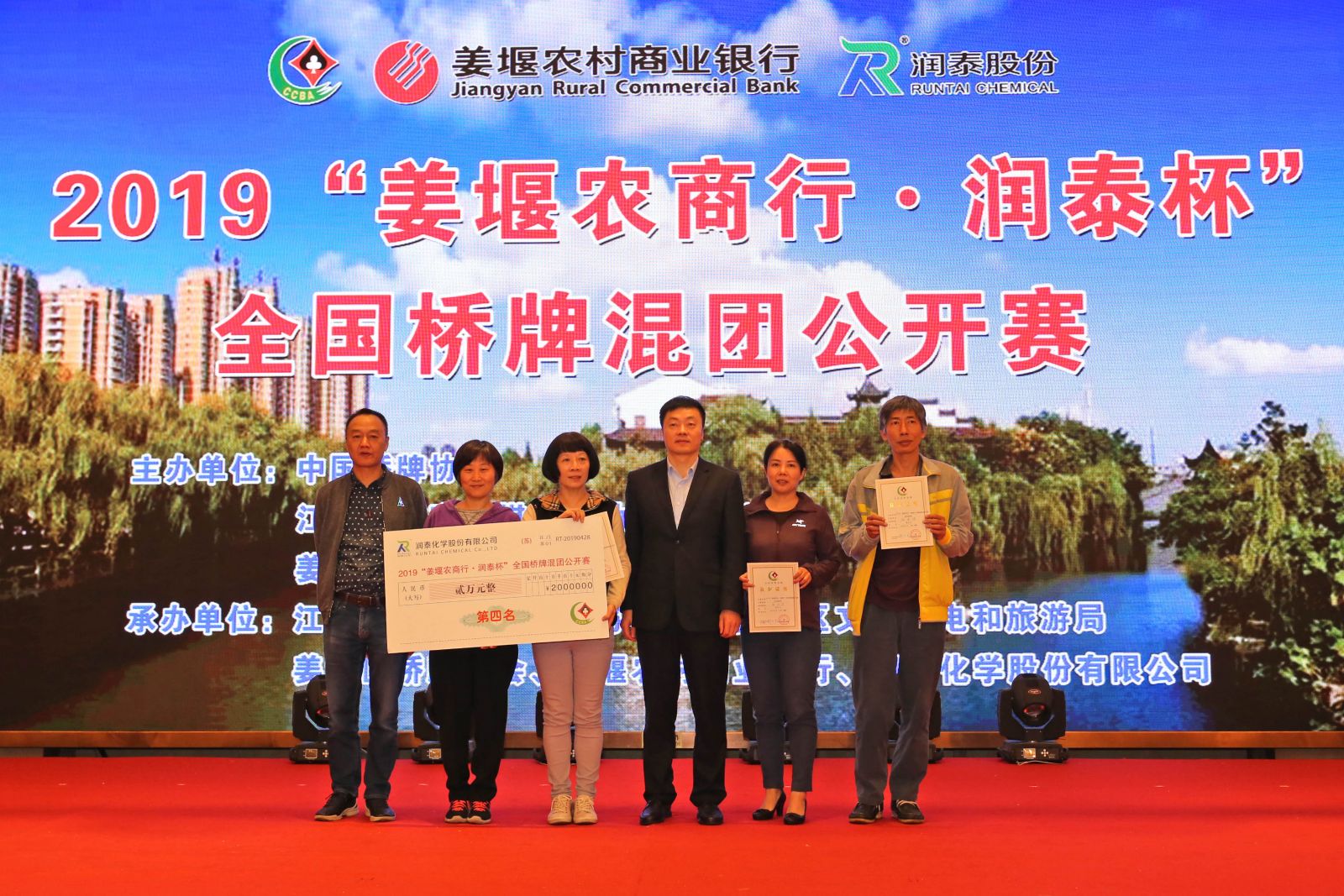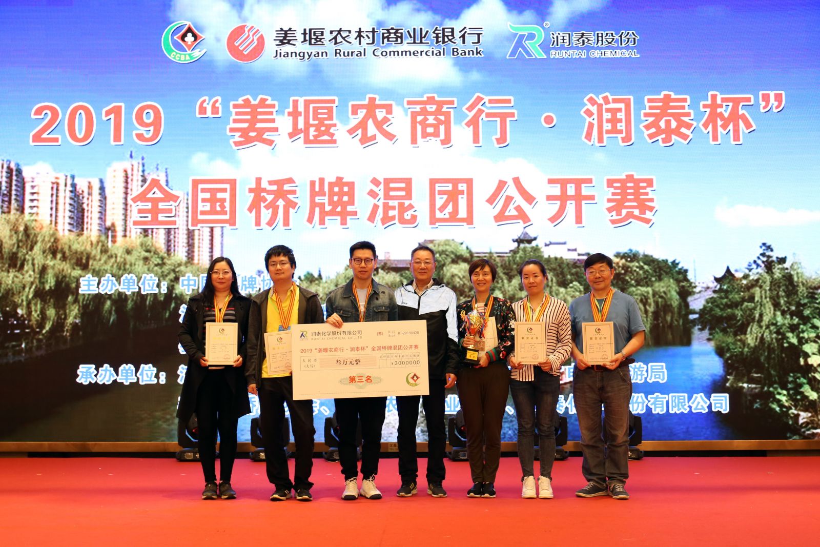 润泰股份讯 经过四天紧张激烈的角逐,2019“姜堰农商行·润泰杯”全国桥牌混团公开赛在大家的热情参与和共同努力下,圆满完成了预定赛程,顺利落下帷幕。