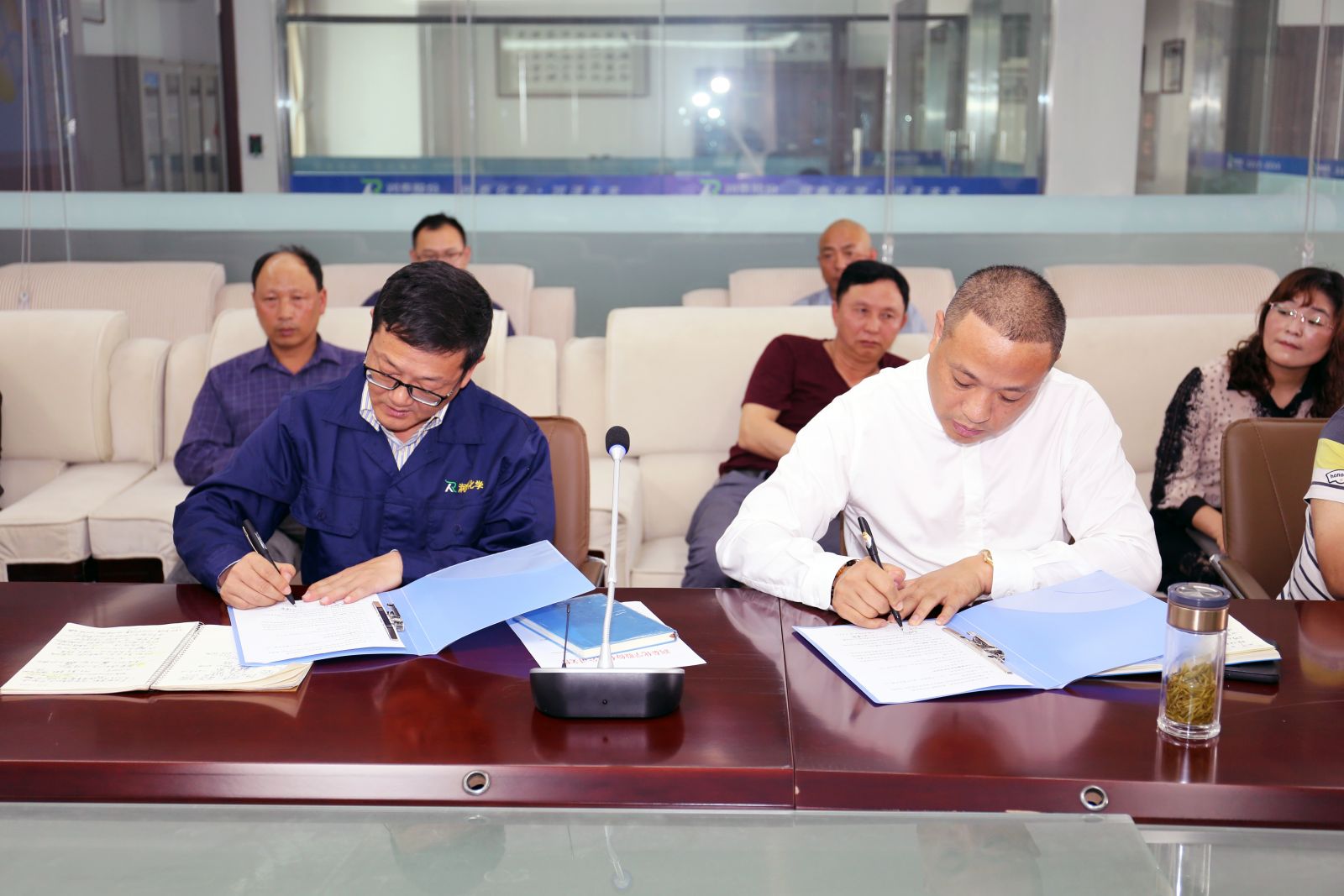 集团副总裁薛和太宣读了总经理目标责任书,清晰表述了岗位职责和义务,董事长张世元与新任泰兴公司总经理王继云现场握手签订目标责任书。