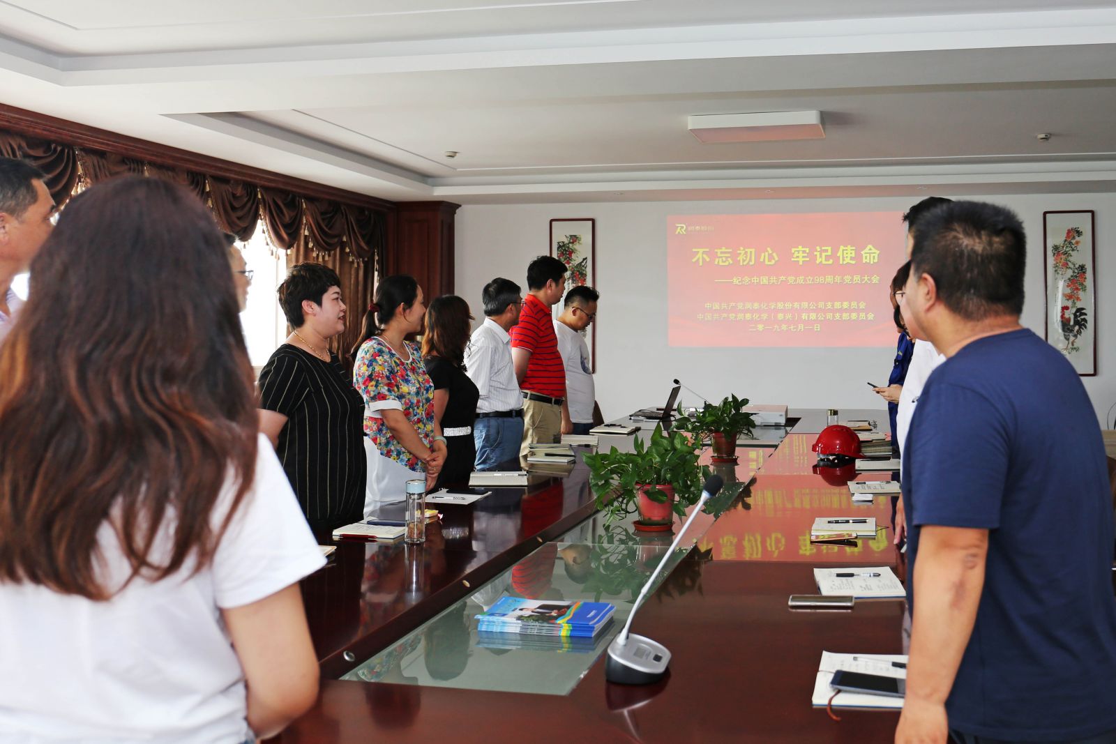 润泰股份讯 6月29日下午,中共润泰化学股份有限公司支部委员会、中共润泰化学(泰兴)有限公司支部委员会在泰兴公司召开全体党员、入党对象、入党积极分子大会,隆重纪念中国共产党成立98周年。
