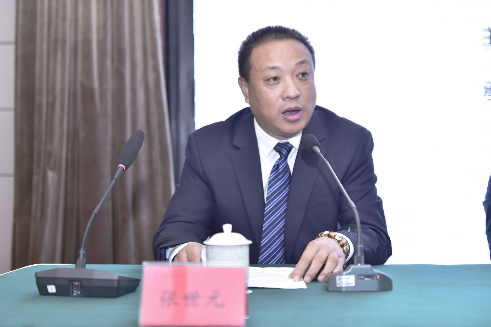 董事长张世元在主席台就坐并代表泰州市总商会、润泰化学股份有限公司在会议伊始致辞。