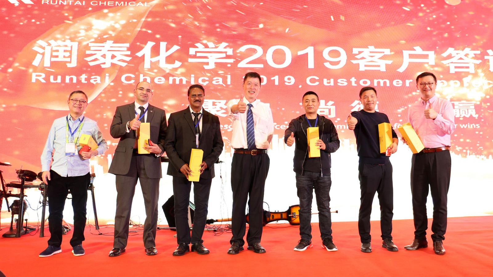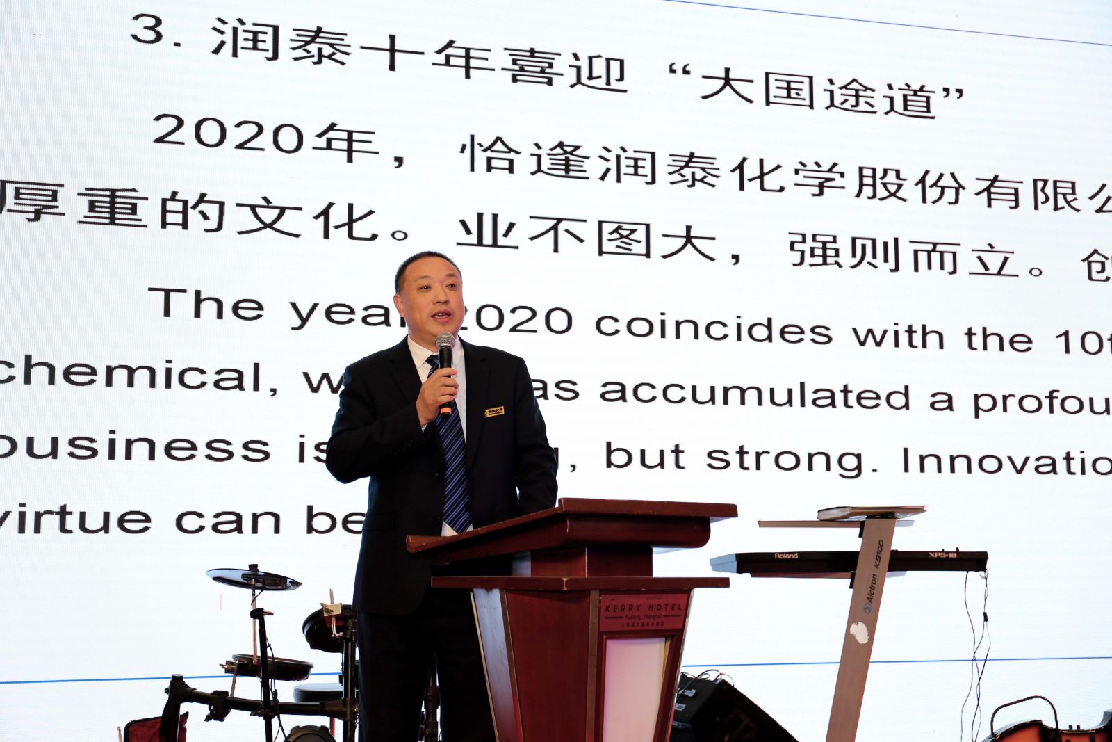 随后,润泰股份董事长张世元在热情洋溢的致辞中对各位贵宾的到来表示热烈的欢迎和衷心的感谢!他从“2019,大展宏图齐发奋”、“2020,喜瞻未来再攀峰”两个方面做了生动的业绩回顾,介绍了2019年公司的运营情况和取得的业绩,十分感谢各位合作伙伴这一年来的支持,感谢大家多年来对润泰股份的关怀与信赖。2020年,恰逢润泰化学股份有限公司创建10周年,同时由润泰化学申办的素有“中国涂料工业G20峰会”之称的第五届“大国涂道”会议也将在同一时间举行。十载发展之路,积淀出厚重的文化。业不图大,强则而立,润泰化学将持续创新发展、技术先行、让厚德得以传承。
