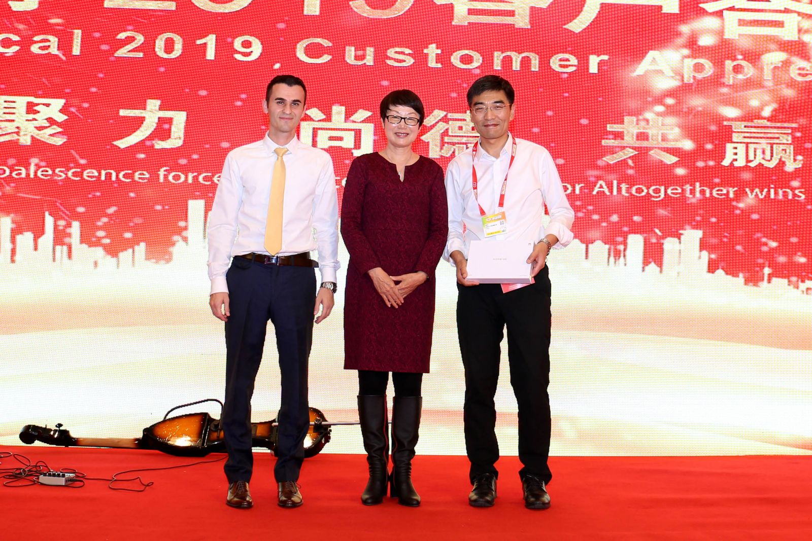 当日晚,以“聚力 尚德 共赢”为主题的客户答谢晚宴在上海嘉里大酒店浦东大宴会厅举行。来自全国各地的战略合作伙伴、新老客户等200余人欢聚一堂,共叙友谊、共享盛宴。