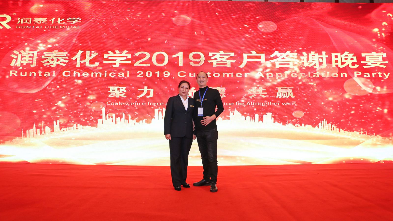 伴随着欢乐和谐的气氛,主持人宣布晚宴正式开始。晚宴伊始,中国涂料工业协会孙莲英会长致辞,她首先感谢润泰股份诚挚的邀请,对于润泰取得的成就表示祝贺,更对润泰股份创新的零VOC助剂产品给予了专业性的肯定,让更多的涂料企业能够用上质量更加稳定,享受相对优惠的价格,为中国涂料行业发展做出了突破性的贡献。2020年润泰股份迎来它10岁生日,希望润泰股份能够扛起民族涂料品牌的大旗,再接再厉,锐意创新,继续探索发展之路,根据国家对绿色环保的新要求,人民对美好生活的新需求,不断开发新产品,不断探索新工艺,为社会提供更加优质的环境友好型和高性能、高附加值的涂料助剂产品!