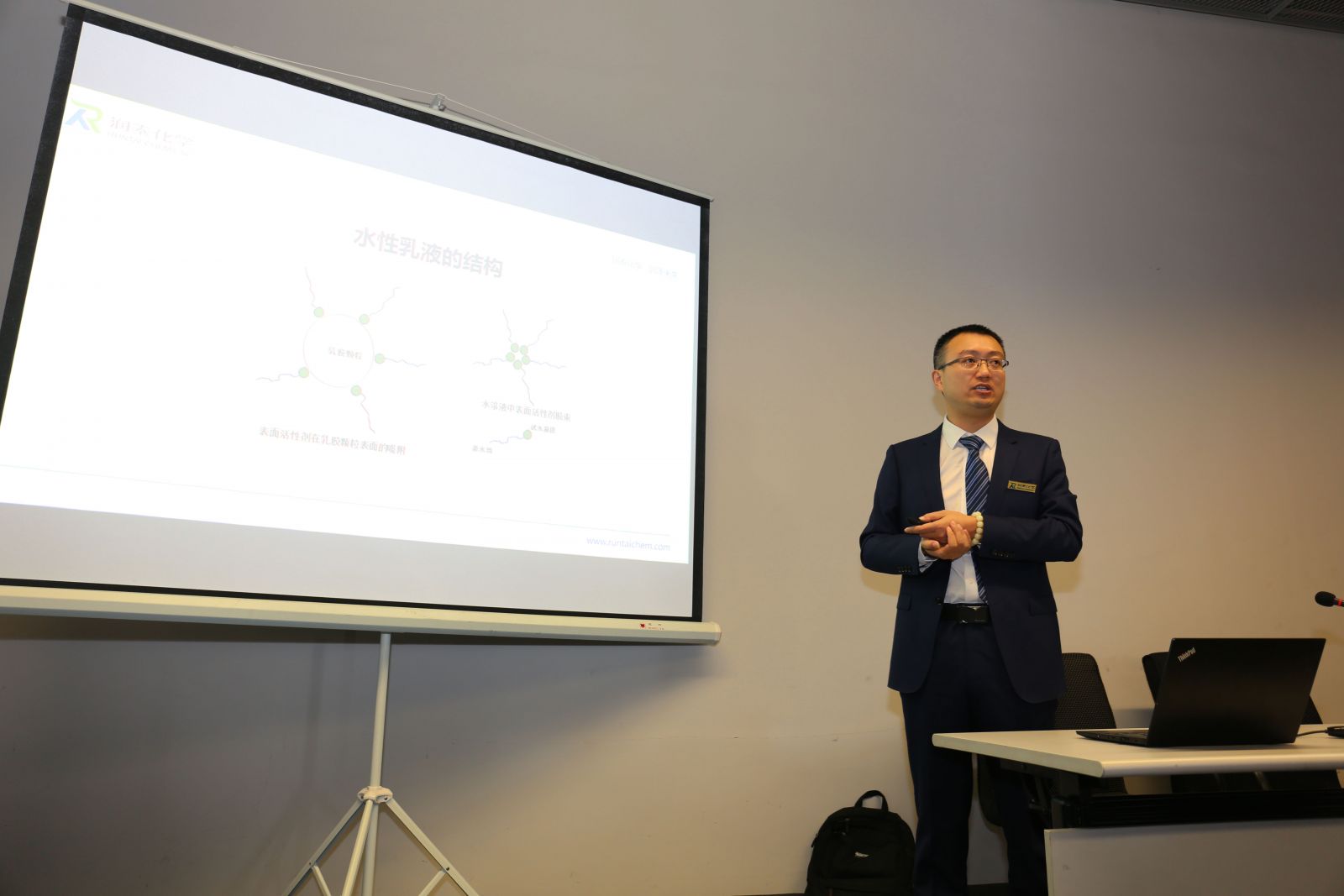 本次技术讲座围绕新型净味成膜助剂RTC-290P,RTC-300在内墙乳胶漆中的应用以及与RTC-16性能的测试对比,新型生物基成膜助剂以及净味成膜助剂在内墙中的应用测试,展开了讲解并进行了现场交流。