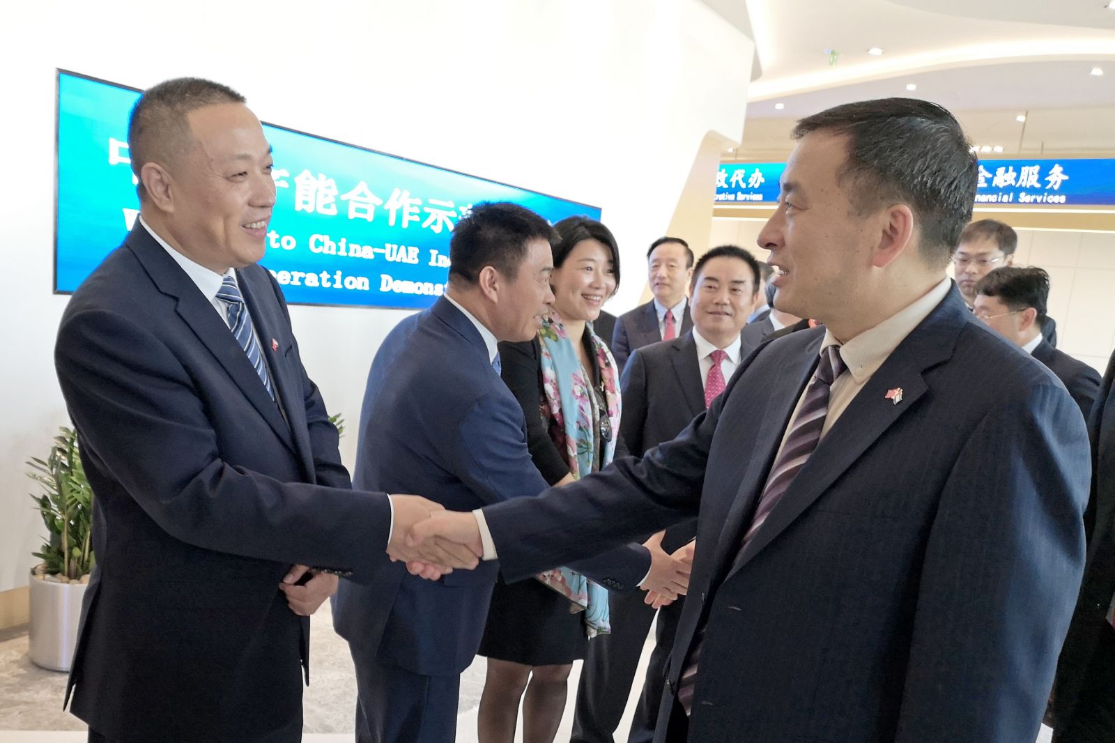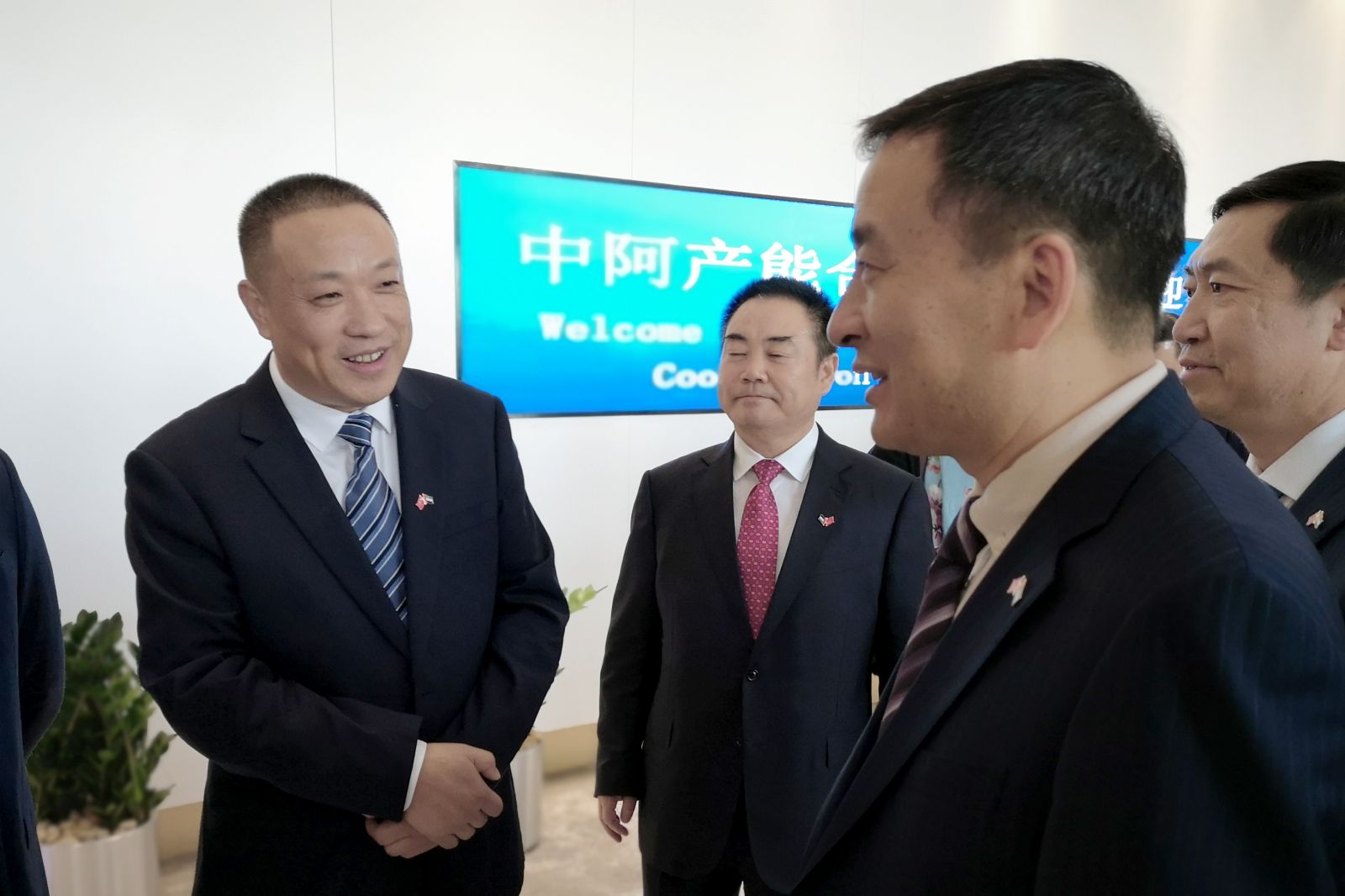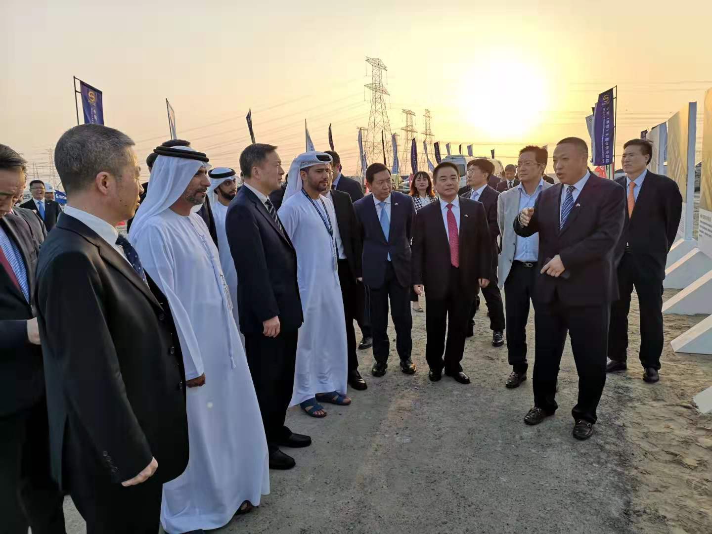 润泰股份讯 当地时间12月9日下午,江苏省委常委、常务副省长樊金龙率江苏省友好代表团赴中阿产能合作示范园调研,为省驻阿联酋经贸代表处揭牌,并出席项目集中开工仪式。润泰股份董事长张世元以友好代表团代表、入园企业负责人双重身份陪同樊省长一行出席了本次活动。