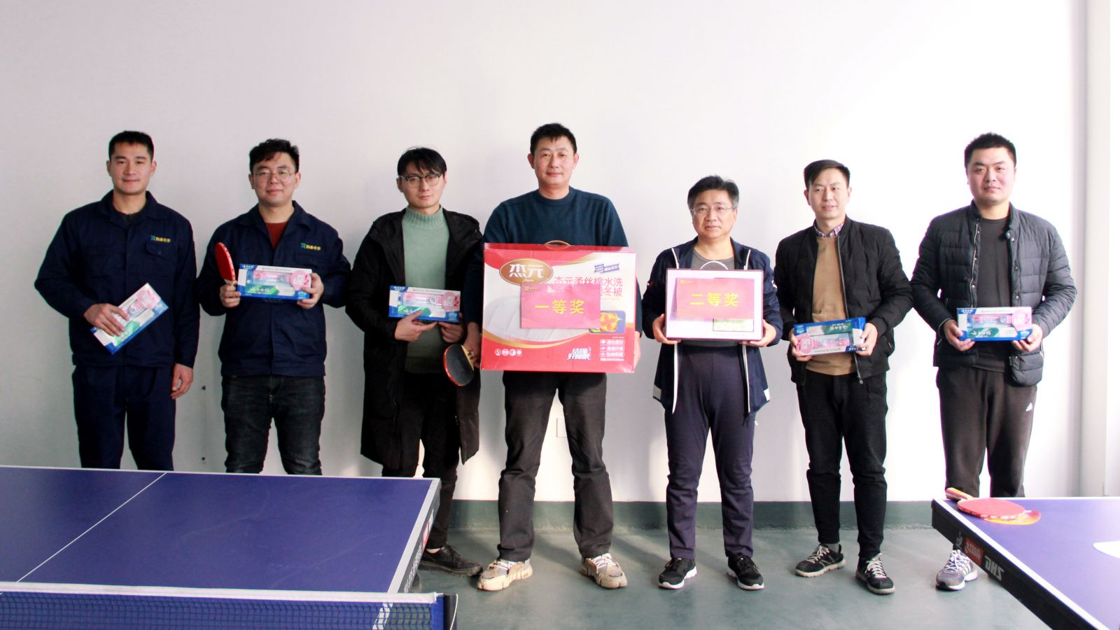 另一赛场,精彩绝伦的乒乓球竞技同样赛事火热。乒乒乓乓,你来我往,方寸之间,也是战场。最终一车间主任张卫亚凭借过硬的技巧和实力获得了冠军,总部副总裁薛和太获得了亚军。