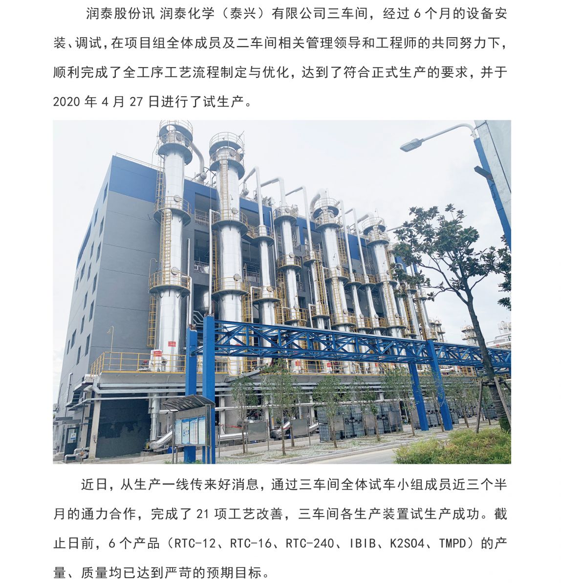 新动“泰”——润泰泰兴三车间试生产取得成功
