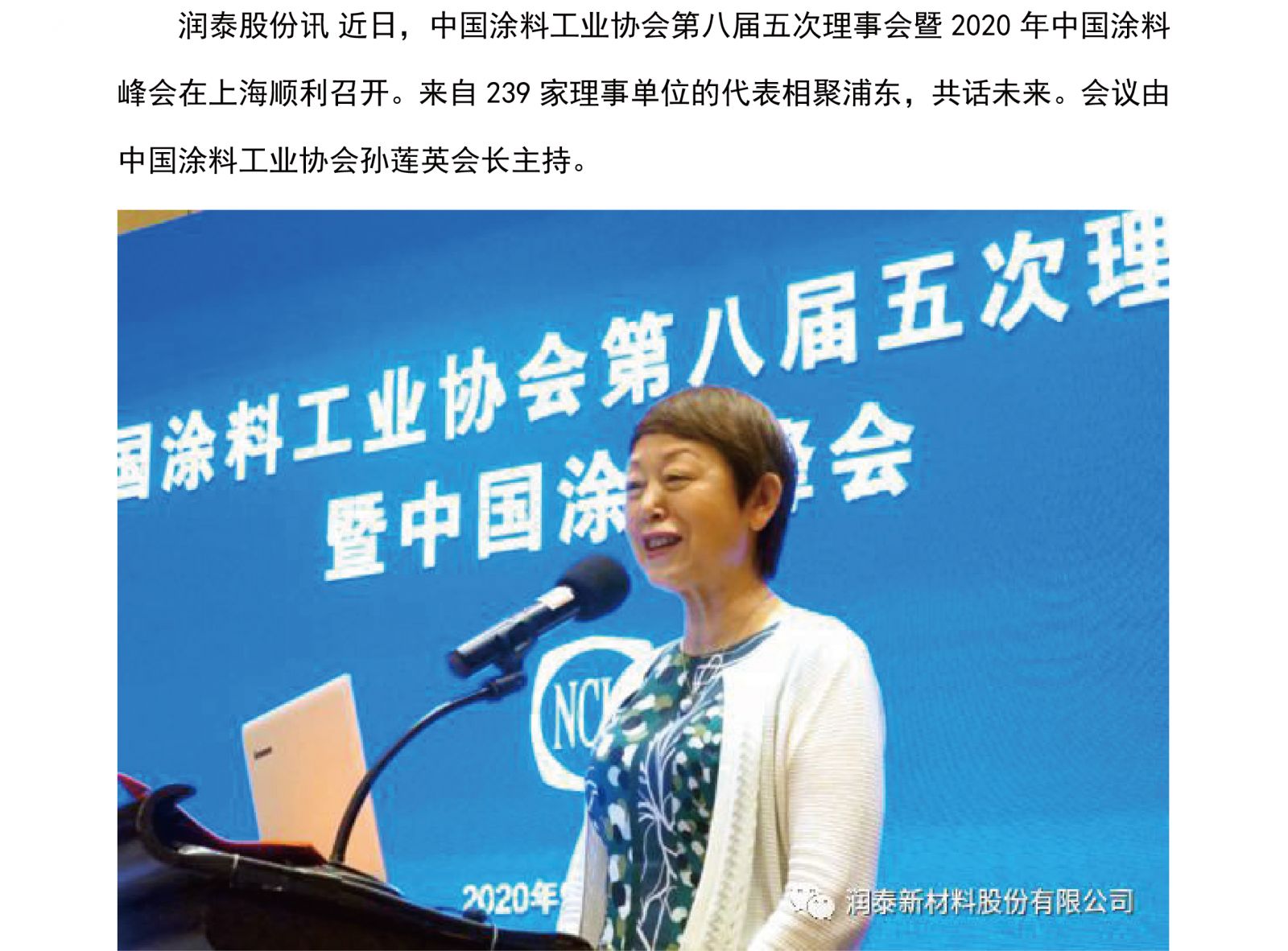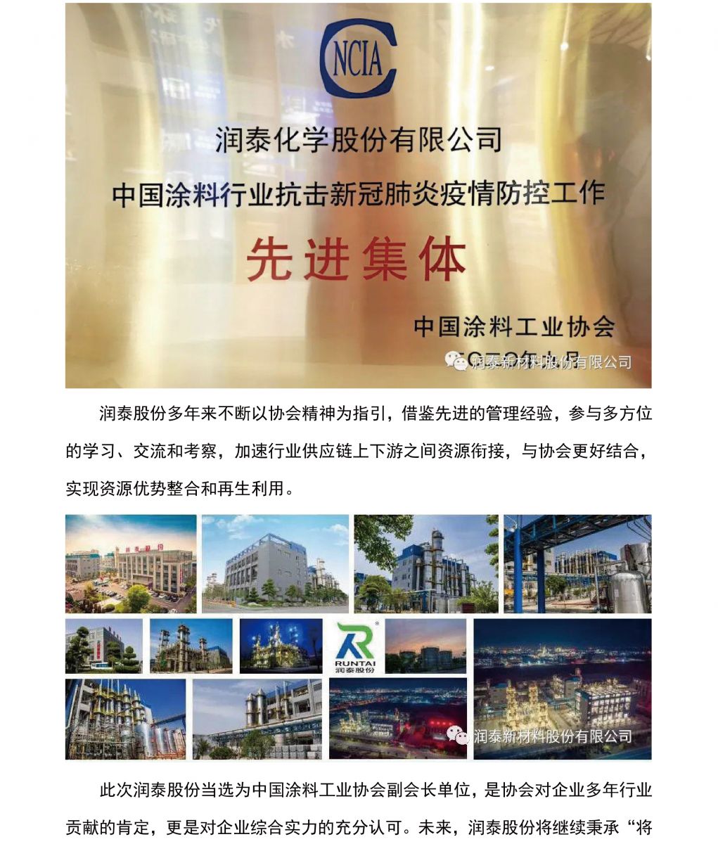“润”动“泰”一一润泰股份当选中国涂料工业协会副会长单位
