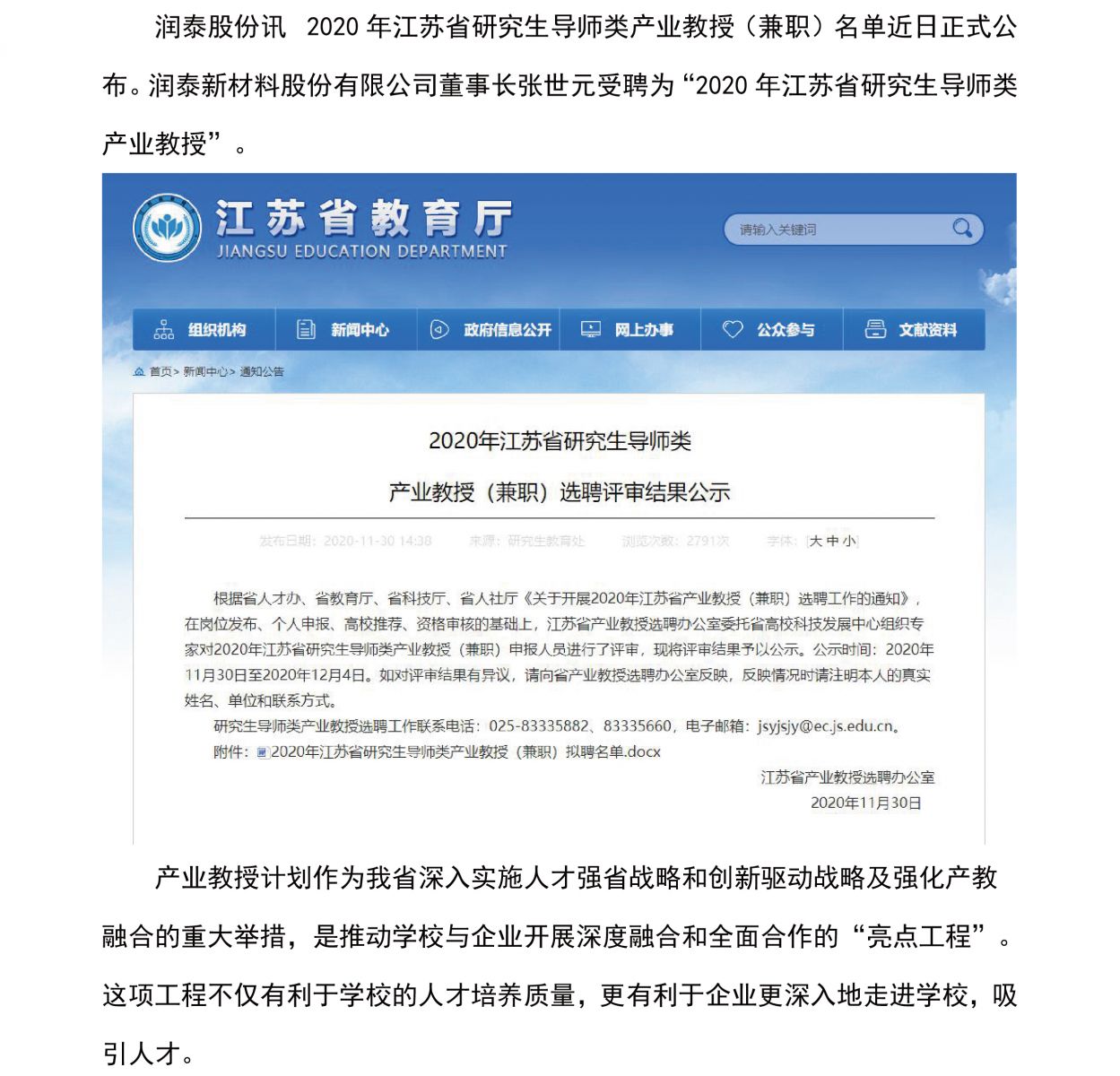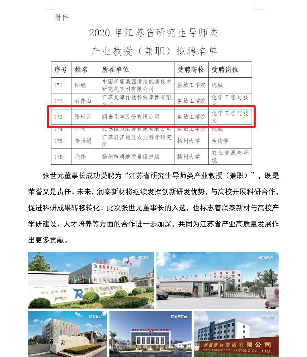 “润”动“泰”——董事长张世元受聘江苏研究生导师产业教授
