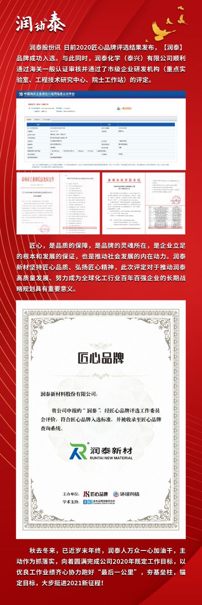 “润”动“泰”——润泰新材入选2020匠心品牌,好事连连挺进2021!