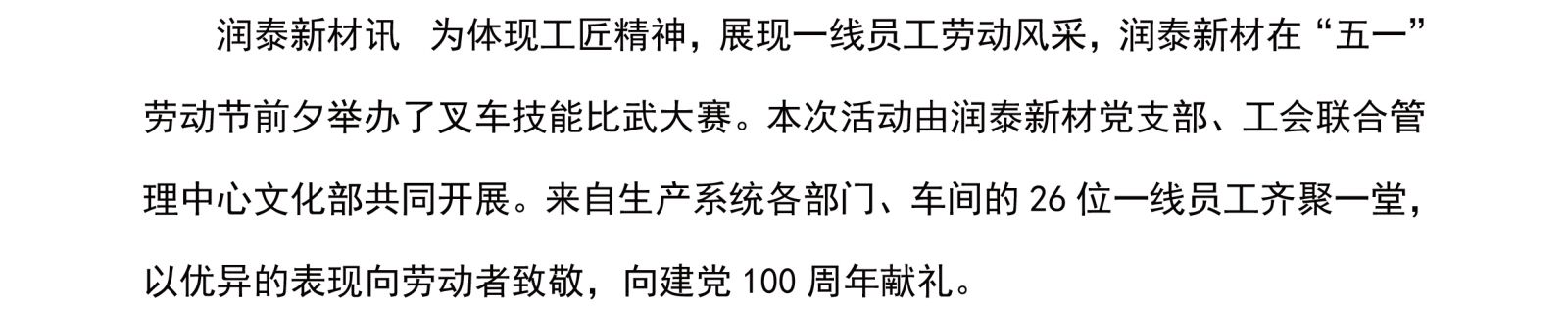 向劳动者致敬——润泰新材举办叉车技能比武大赛