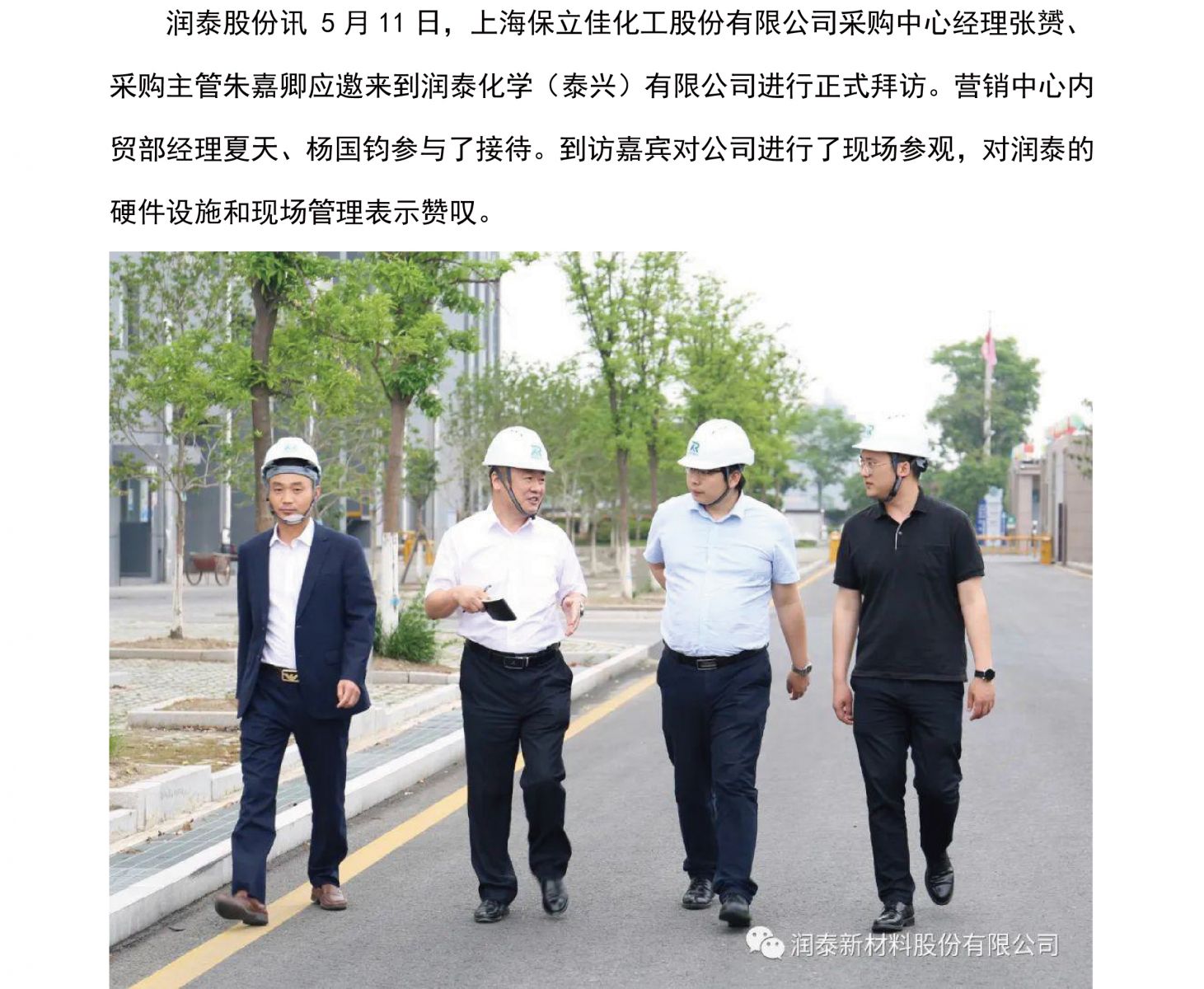 上海保立佳化工到访润泰新材
