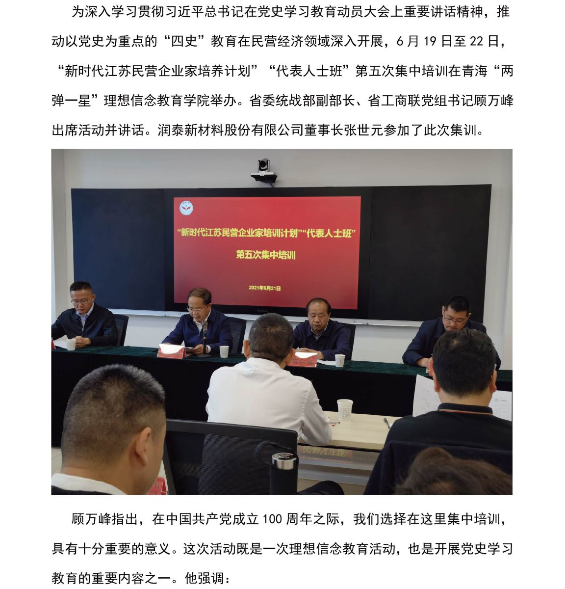 润泰新材董事长参加“新时代江苏民营企业家"第五次集训