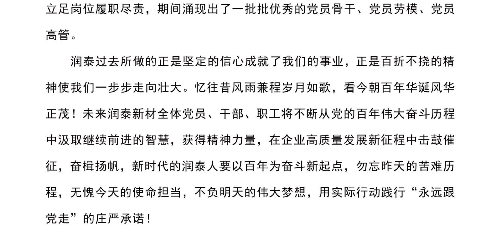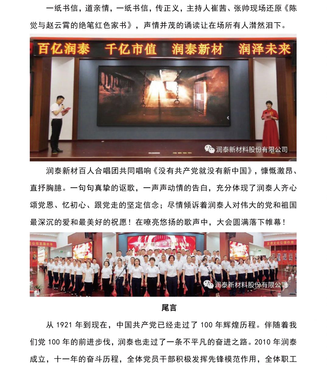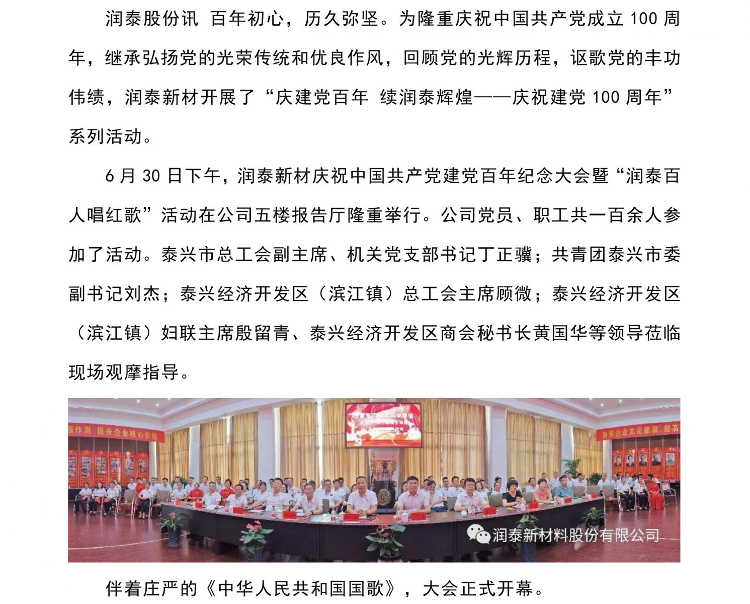 润泰新材召开建党百年纪念大会暨“润泰百人唱红歌”活动