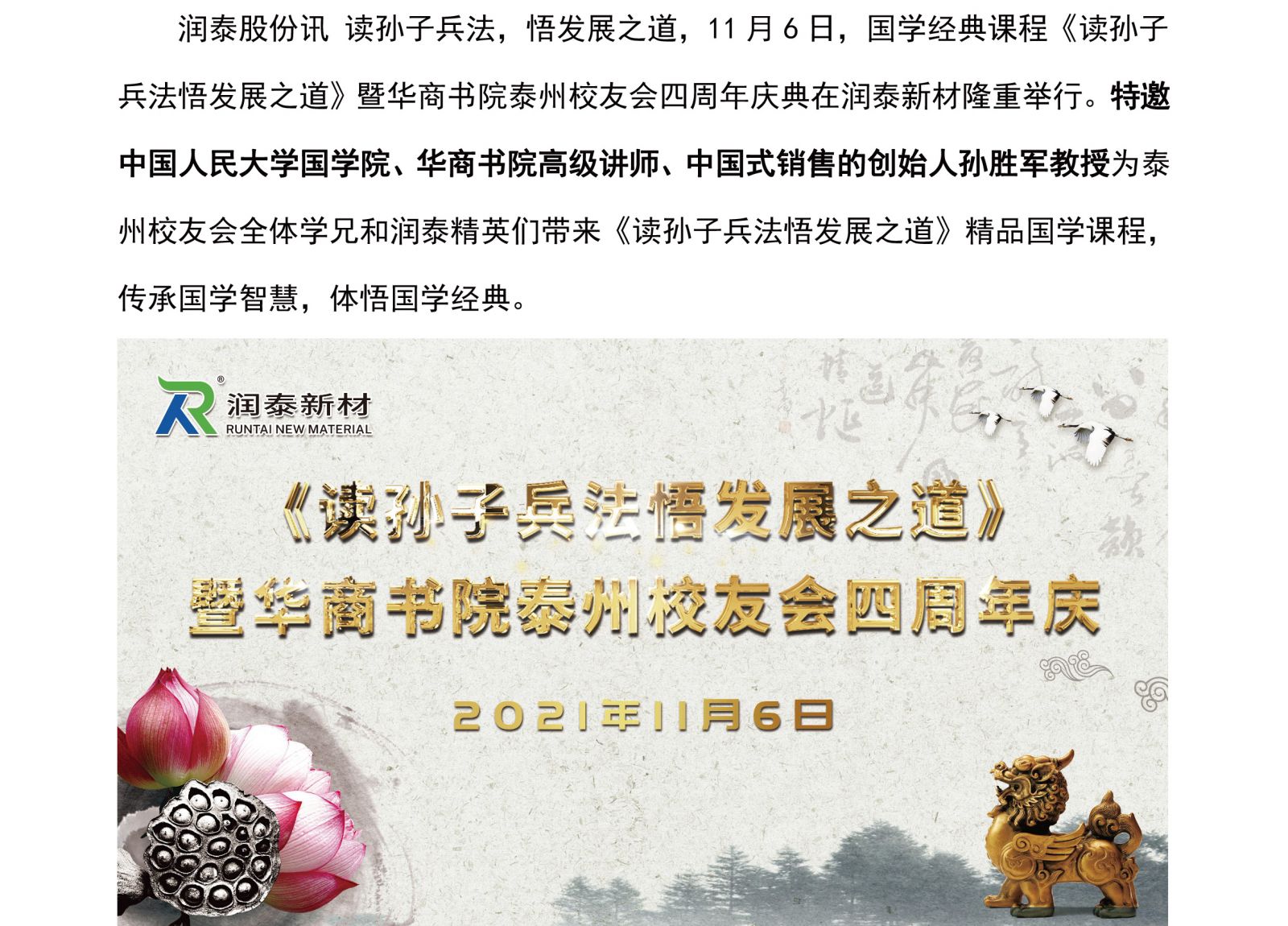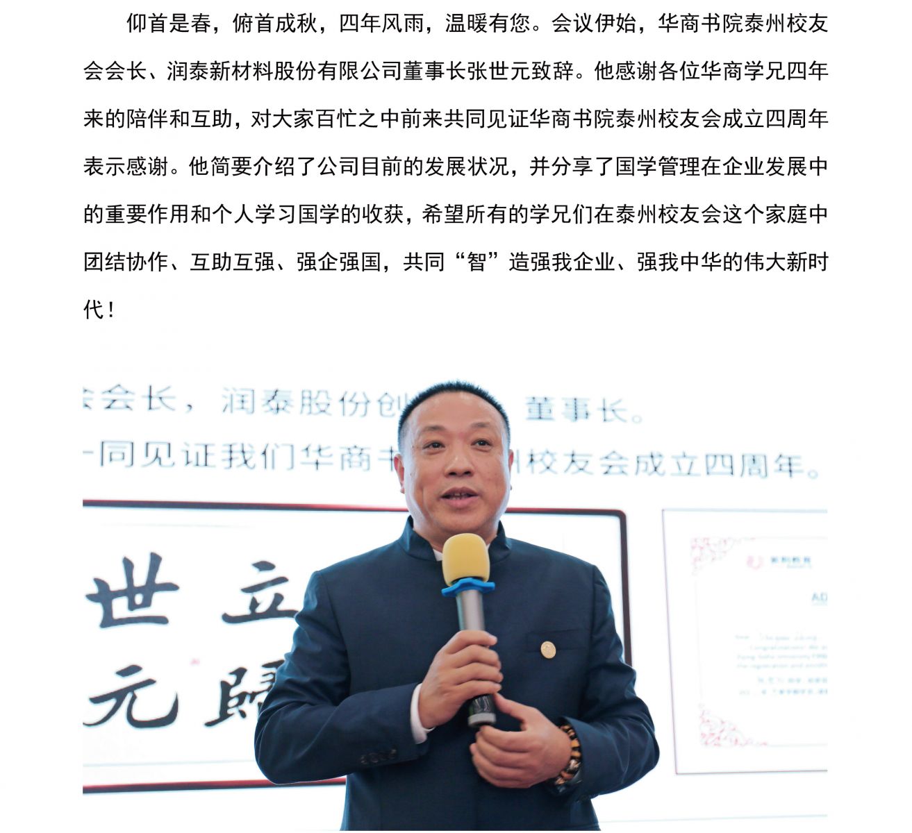 华商书院泰州校友会四周年庆典在润泰新材圆满召开