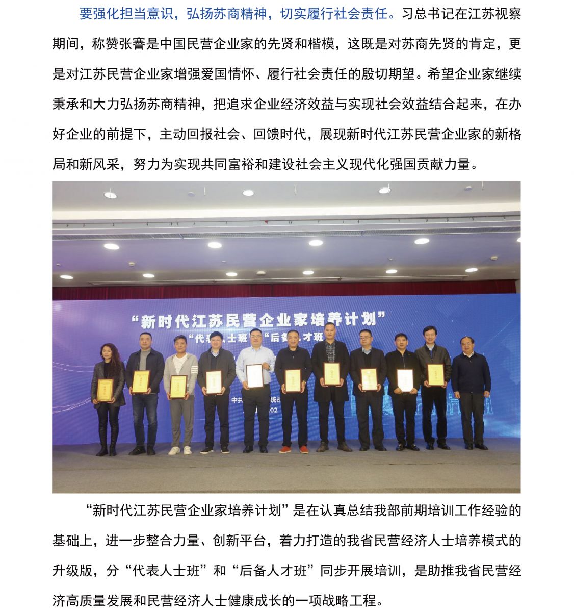 董事长获“新时代江苏民营企业家代表人士班”优秀学员