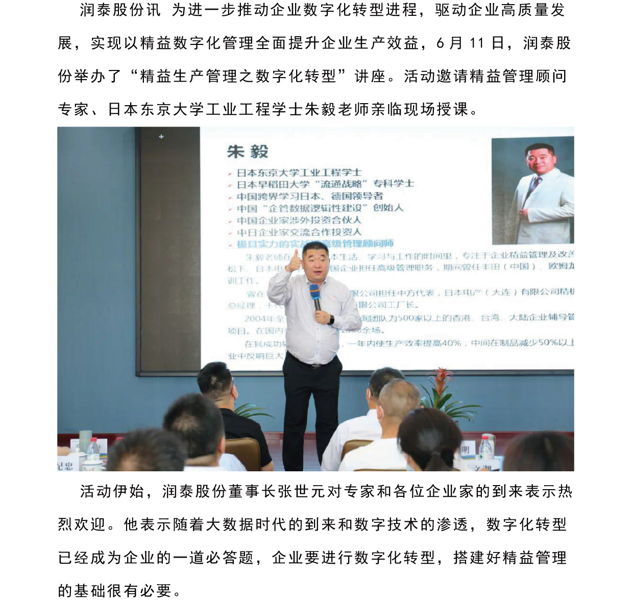数字驱动 | 润泰股份举办“精益生产管理之数字化转型”讲座