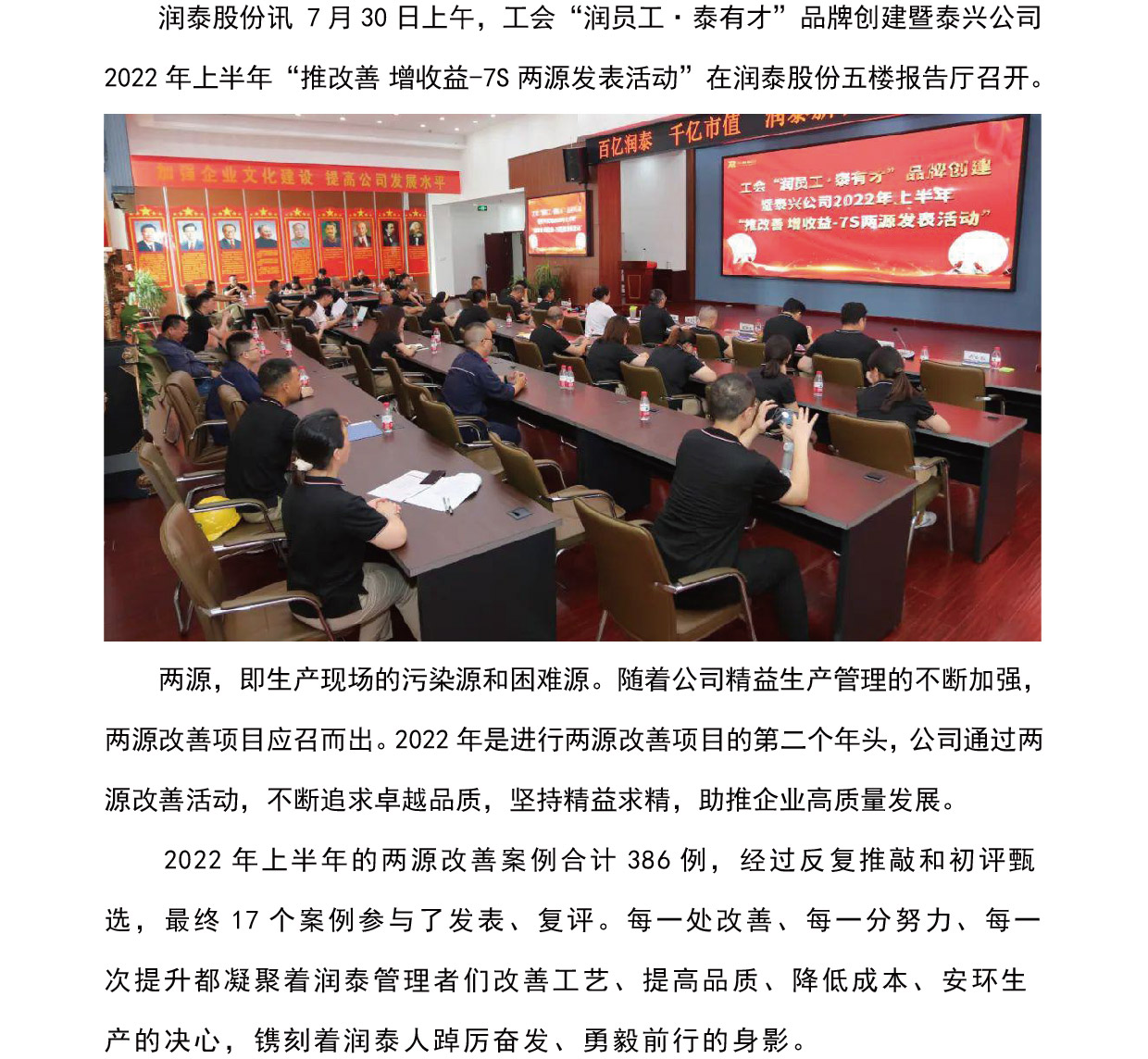 推改善 增收益|润泰股份2022年上半年两源改善发表会圆满召开