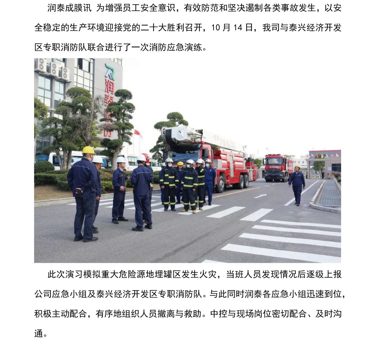 喜迎二十大 筑牢安全墙 | 润泰与专职消防队联合开展消防应急演练