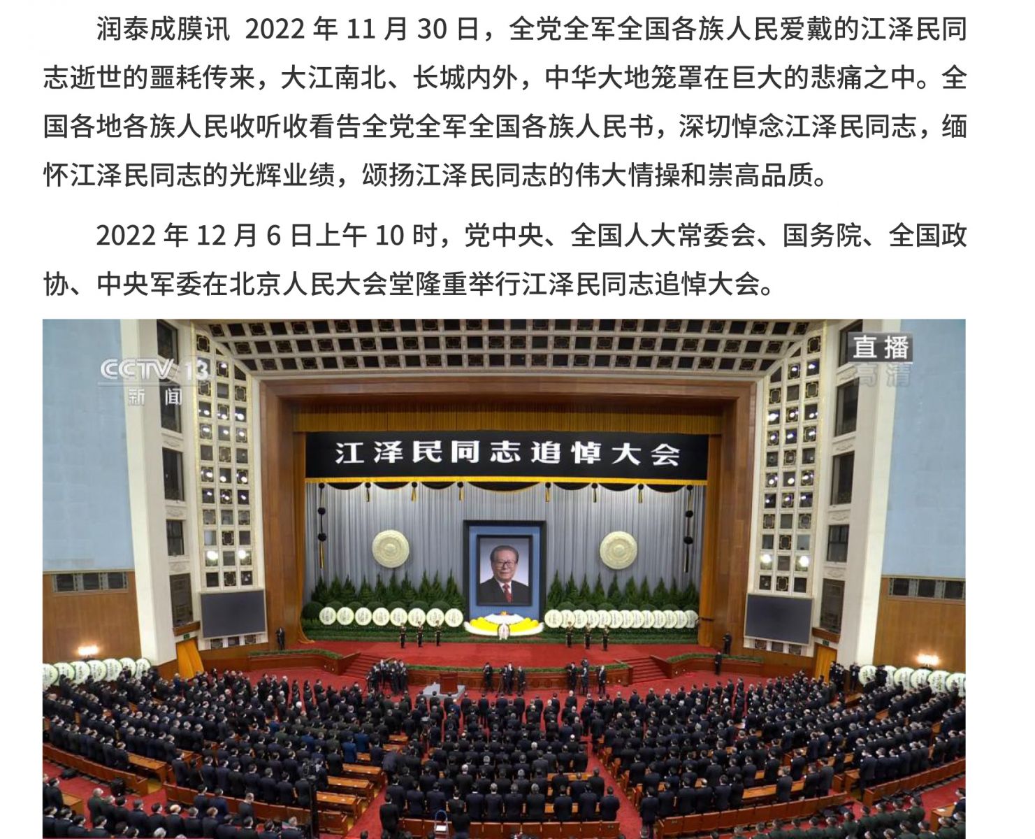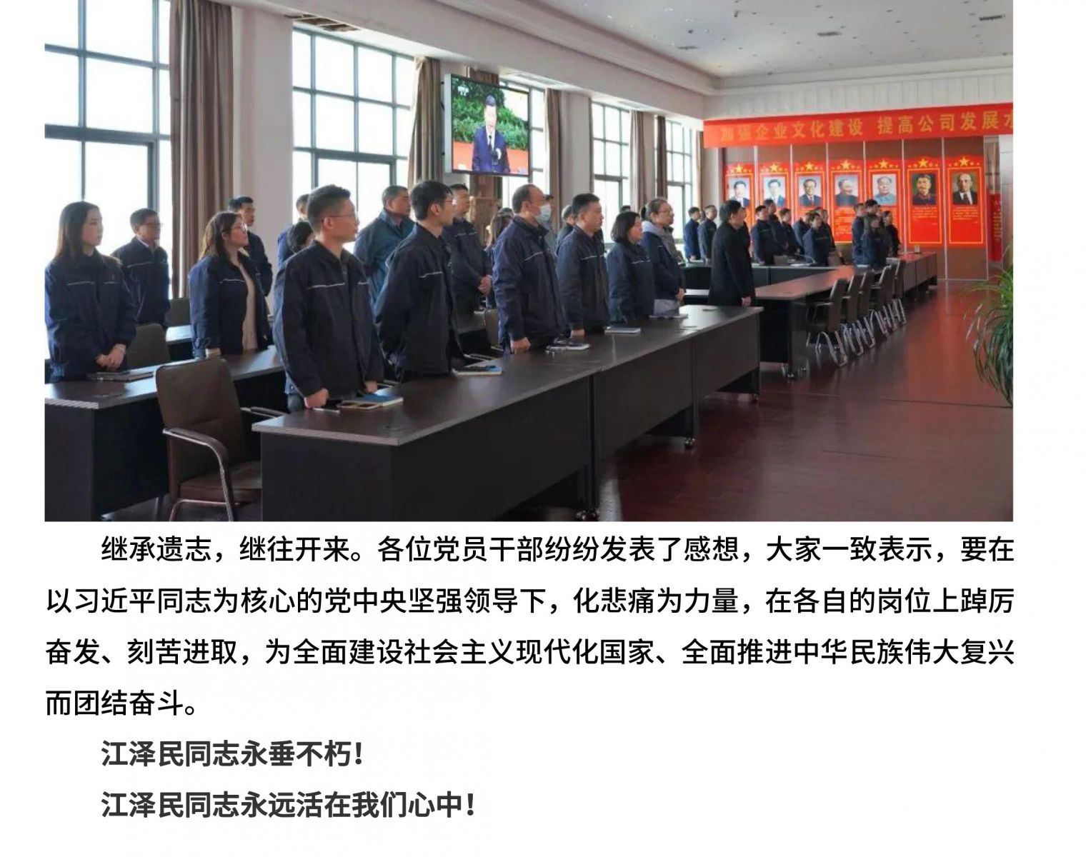 悼念缅怀,润泰成膜组织党员干部收看江泽民同志追悼大会