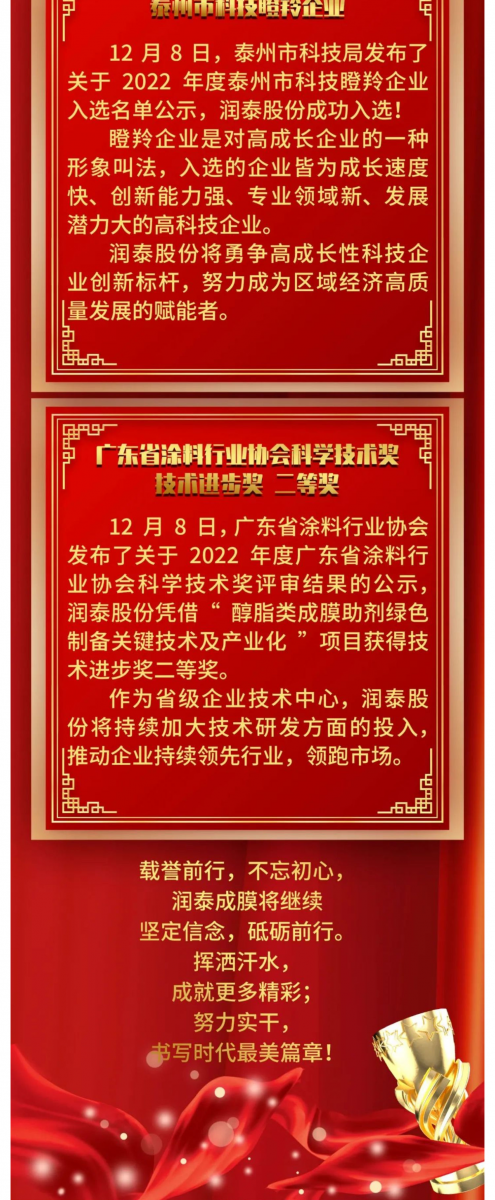 捷报频传!润泰成膜收官季斩获多项荣誉!