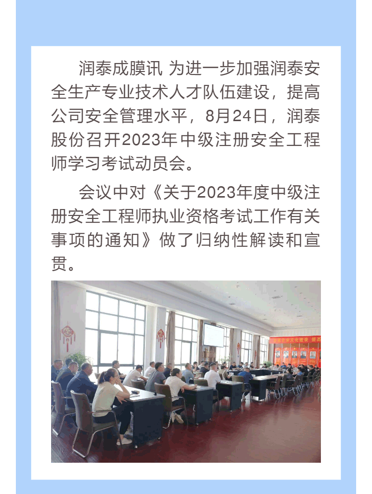 【学习之窗】润泰股份召开中级注安师报考动员会