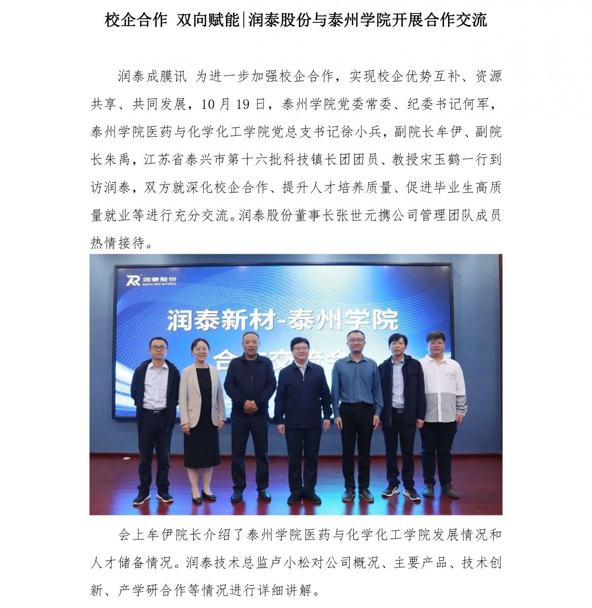 校企合作 双向赋能 | 润泰与泰州学院开展合作交流会