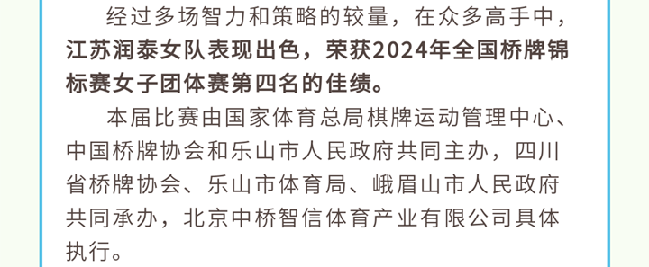润泰桥牌队荣获全锦赛第四名